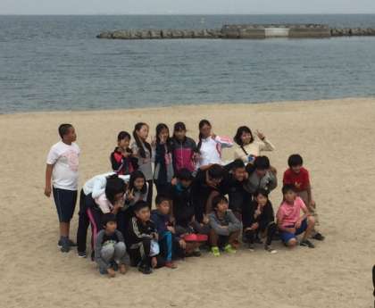 砂浜での記念撮影です。思い出はたくさんできましたか?