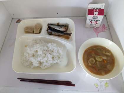 「いわしのしょうが煮」は、1人2尾のいわしを切りこんぶ、調味液とともにミニバットに入れ、さらに、せん切りのしょうがを加え、焼き物機で煮ます。