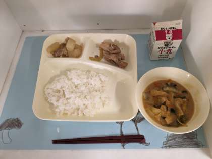 「鶏肉の甘辛焼き」は、鶏肉を料理酒、砂糖、みりん、こいくちしょうゆで下味をつけ、たまねぎを混ぜ合わせ、焼き物機で焼きます。