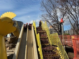 天神橋筋商店街と扇町公園での様子です。この時期なので人も少なく、たくさんの遊具で遊ぶことができました。