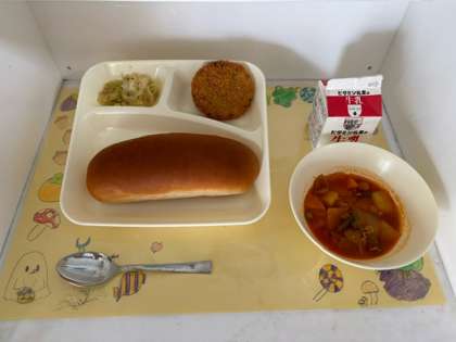 児童に人気の「チキンレバーカツ」は、ほんのりカレー味がついて食べやすく、不足しがちな鉄分を摂ることができます。