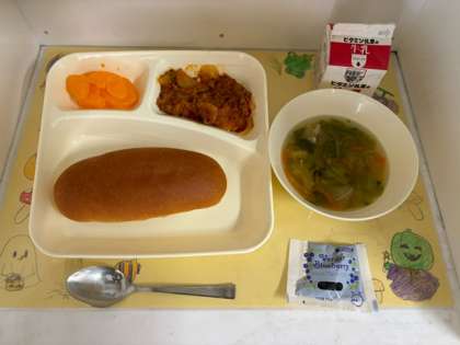 「じゃがいものミートグラタン」は、牛ひき肉、豚ひき肉を主材にしたグラタンです。じゃがいもに上新粉を使用したケチャップ味のミートソースを合わせています。パン粉も米粉のものを使用しています。