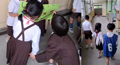 2年生が1年生に校内の様々な教室を案内しました。教室へ案内する際には、手をしかっりとつなぎ迷子にならないように気をつけたり、教室の前ではゆっくり大きな声で説明したりして「りっぱなお兄さんお姉さん」として接することができました。