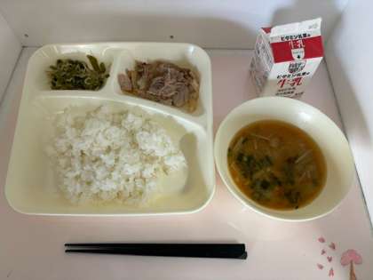 「とうふのみそ汁」は、とうふを主材に、キャベツ、にんじん、えのきたけと青みに青ねぎを使用したみそ汁です。