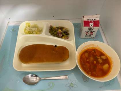 「ケチャップ煮」は、鶏肉を主材に、じゃがいも、たまねぎ、にんじん、青みにグリンピースを使用し、ケチャップなどで味つけします。