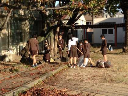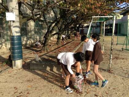 11月12日(木)のきたおかタイムは、講堂周辺の落ち葉が気になり始めたので、講堂周辺を重点的に清掃しました。かなりの数の落ち葉を拾ってくれました。