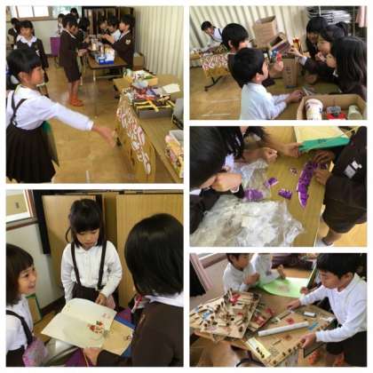 先月から生活科の時間をつかって秋フェスタの準備をしてきました。「お客さんはどうやったら喜ぶかな?」「ルールはどう言ったらいいかな?」と自分達で工夫をしながらお店づくりができました。