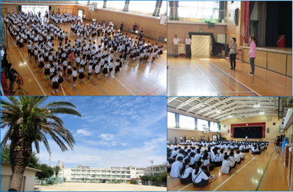 イングリッシュデイを最後に、いつも明るく楽しく外国語を教えてくださったC-NETの先生が離任されることになり、お別れのあいさつがありました。さみしくなりますが、感謝の気持ちを込めて校歌を一緒に歌いました。