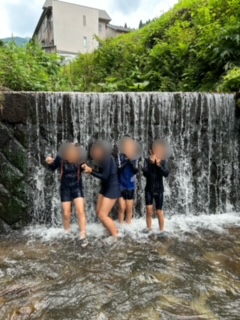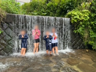 魚つかみや焼き板みがきができた子は、滝行(?)に勤しんでいます。