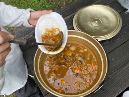 山の中でみんなで食べるカレー、おいしいに決まってます!