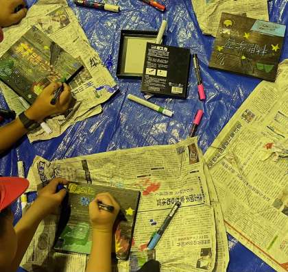 楽しかったハチ北での活動を思い返しながら、それぞれの思いを焼き板に表しました。