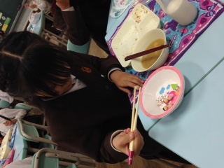 さらに豆つかみゲームはとても盛り上がりました。普段から上手にお箸をつかえている人たちが大活躍していましたね。