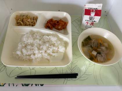 「とうふのスープ」は、豚肉、とうふ、たまねぎ、チンゲンサイ、にんじん、もやしを使用しています。