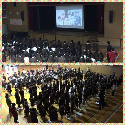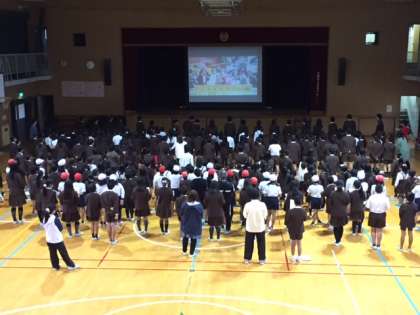 12月3日のハッピー集会では、全校生徒で「数え歌」を歌いました。色々な国の言葉が歌詞に入っているので少し発音しづらい部分もありましたが、みんなやさしい響いた声で歌っていました。