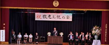 15(日) 地域主催「敬老お祝の会」が行われました。日頃からお世話になっている地域のお年寄りの方々に、感謝の気持ちと健康をお祝いする気持ちを伝えました。本校からは児童代表として6年生3名が、舞台上で作文を読みました。後半では様々な団体によって演目が披露され、楽しい会となりました。
