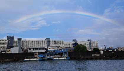17日(火)朝、大正区の上空に大きな虹があらわれました。きれいに7色見ることができました。