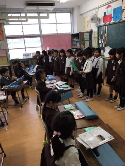 2年生は2学期に入ってから、生活科でおもちゃ作りに取り組んできました。完成したおもちゃを使って、8日(火)3時間目におもちゃランドを開きます。そのおもちゃランドにぜひ1年生を招待したいということで、今日招待状を渡しにました。