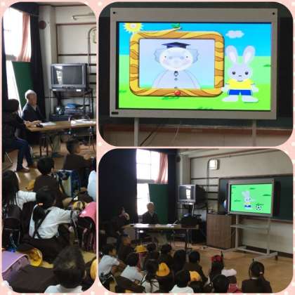 紙芝居や映像を使ったお話だったので、みんな一生懸命見て、話を聴いていました。