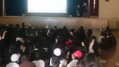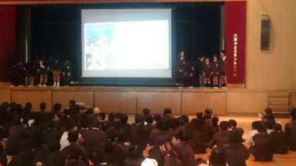 10日(木)のハッピー集会は図書委員会によるブックトークでした。ブックトークとは、あるテーマにそって順序立てて本を紹介し、聴き手に「読んでみたい」という気持ちを起こさせる行為です。今日のテーマはクリスマス。クリスマスやサンタクロースにまつわる本を紹介しました。クイズを交えて、聴いている子どもたちが興味を持てるよう工夫していました。また、発表する図書委員の子どもたちは、原稿を見ないでわかりやすくブックトークをすることができました。これをきっかけに、子どもたちにたくさん本を読んでもらえれば、と思います。