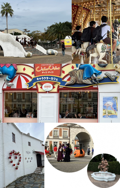 班でアトラクションを楽しんだり、お土産を選んだり、ランチを食べたりしています。よい思い出作りができているようです。