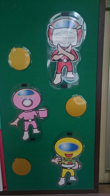 ずいぶんと冷えてきました。ほけんだより11月号に登場した(保健室前にもいますよ)、かぜよぼうレンジャーを思い出して、かぜをひかないようにお過ごしください。