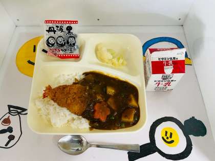 「エビフライカレーライス」は、牛肉を主材としたカレーライスに、1人1尾のエビフライを添えます。