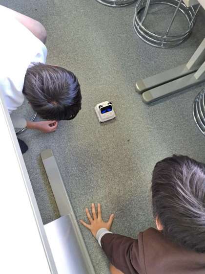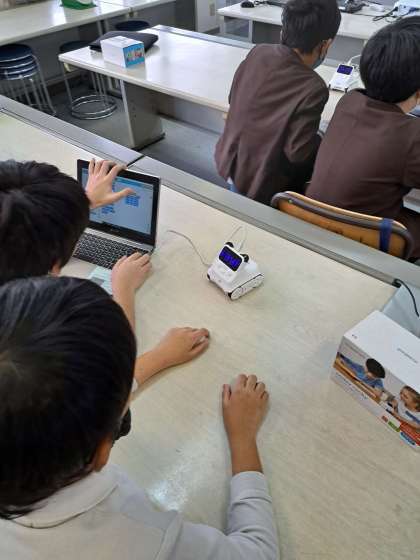 大阪市総合教育センターからプログラミングロボットをお借りして、プログラミングに挑戦しました。今回は2回目となり、イメージ通りに動かすためのプログラミングをすばやく組んだり、実際の動きとイメージとの違いから改善したりする姿が見られました。動く様子が楽しいようで、ずっと眺めている人もいました。