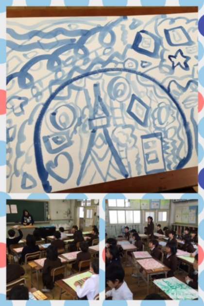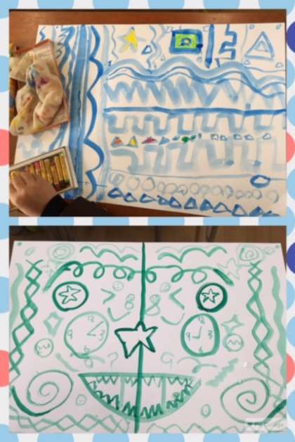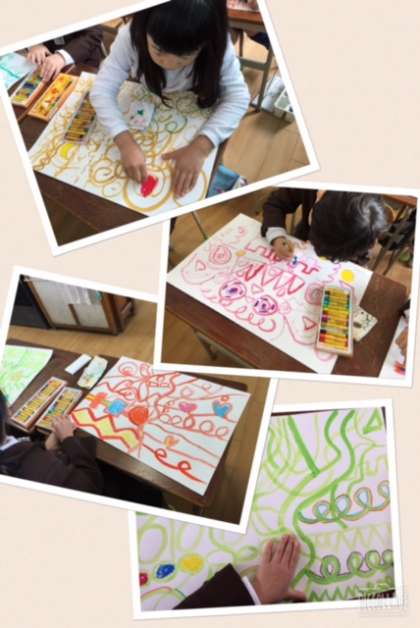みんな色々な線を引いて、画用紙いっぱいにそれぞれの世界を作っていました。