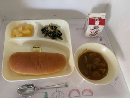 「ミートボールと野菜のカレー煮」は、肉だんごを主材に、たまねぎ、だいこん、にんじん、しめじ、青みにむきえだまめを使用し、カレールウの素などで味つけした煮ものです。