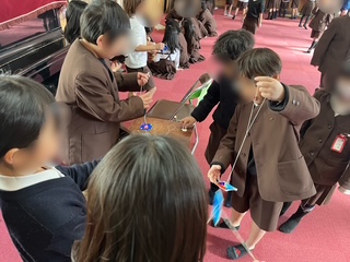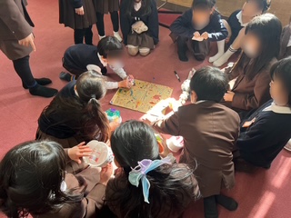 1年生を招待して、おもちゃランドを開きました。1年生と一緒に遊べるのをとても楽しみにしていました。自分たちが作ったおもちゃの遊び方を優しく教える2年生の姿に成長を感じました。笑顔いっぱいのおもちゃランドになりました。