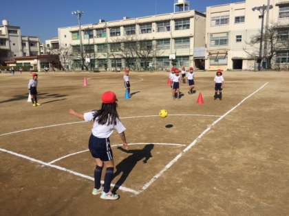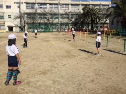 1月15日(金)、今日の体育ではキックベースで点数を取るための練習をしました。