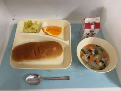 「キャベツのサラダ」は、焼き物機で蒸したキャベツに、砂糖、塩、米酢、うすくちしょうゆ、綿実油で作ったドレッシングをかけ、あえます。