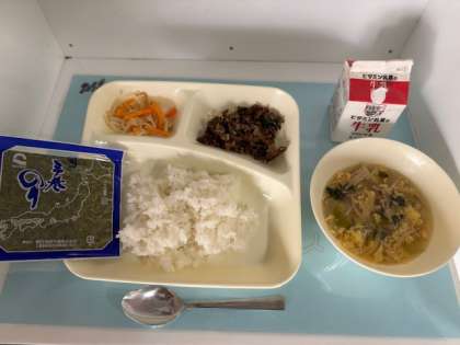 ※令和5年度学校給食献立コンクール優秀賞に選ばれた献立です。生徒が考えたねらいは、「キンパを給食で食べたいと思い考えました。自分で