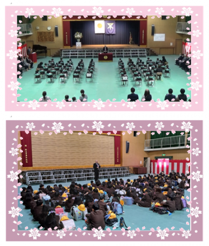 7日(月)に入学式、8日(火)に着任式・始業式を行い、全学年新しい学校生活をスタートさせました。新たな1年に希望を膨らませワクワクドキドキしながら登校し、久しぶりの友だちや先生たちに会えて、とてもうれしそうでした。