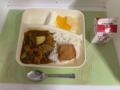 「カツカレーライス」は、一口トンカツを170度のなたね油であげ、配缶時に牛肉を主材としたカレーライスに添えます。