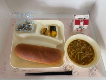 「カレースープスパゲッティ」は、鶏肉とベーコンを主材にしたカレー味のスープスパゲッティです。
