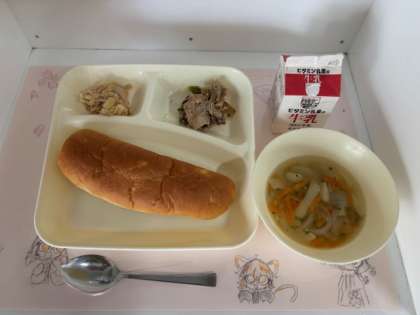 「スープ」は、鶏肉で旨みを出し、じゃがいも、たまねぎ、にんじん、彩りにパセリを使用しています。
