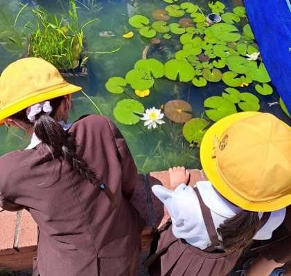 種まきの後は、ホウセンカや池の中の生き物の様子を観察しました。