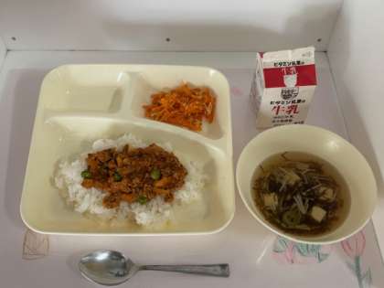 「タコライス」は、沖縄料理のひとつです。いためたひき肉、豚レバーチップ、たまねぎをカレー粉、ケチャップ、ウスターソースなどで味つけし、青みにグリンピースを使用し、ご飯の上にかけて食べます。