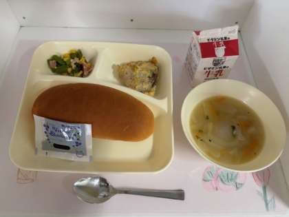 「押麦のスープ」は、鶏肉で旨みを出し、押麦、じゃがいも、たまねぎ、にんじん、彩りにパセリを使用したスープです。