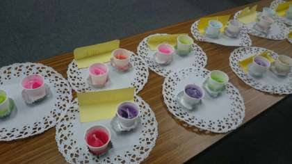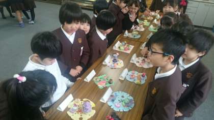 1日(月)、クラブ活動で4〜6年生が作った作品が展示され、それぞれのクラスで鑑賞しました。出展したのは家庭科クラブ、理科クラブ、図画工作クラブです。ティッシュケースやキャンドル、ミニチュアスイーツなど、どれも工夫を凝らした作品に子どもたちは歓声を上げて鑑賞していました。将来入りたいクラブが心の中で決定したかもしれません。