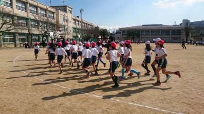 1月の大なわに続いて、2月の水曜日と金曜日は耐寒かけ足に取り組みます。3日(水)は気持ちのよい青空の下、今年度はじめてのかけ足に取り組みました。