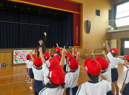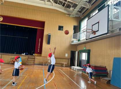 プロバスケットボールチーム「大阪エヴェッサ」の方々に、バスケットボールを教えて頂きました。小学校で初めて触るバスケットボールに、ワクワクが止まりませんでした。プロの見本はやっぱり素晴らしく、子どもたちは目を輝かせていました。