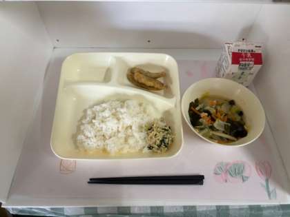 「五目汁」は、キャベツ、たまねぎ、たけのこ、にんじん、わかめを使用しています。
