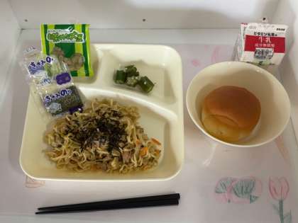 「和風焼きそば」は、豚肉を主材に、しょうゆ味の焼きそばです。食べる時にきざみのりをかけて食べます。
