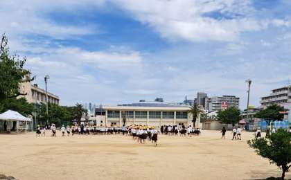 地震と津波に備えて避難訓練を実施しました。指導の根底に「命を守る」ことを据え、机の下に隠れて落下物から身を守ったり、すばやく移動し集合したりしました。津波の避難訓練では、低学年の子どもたちも慣れない教室内でも静かに過ごすことができていました。