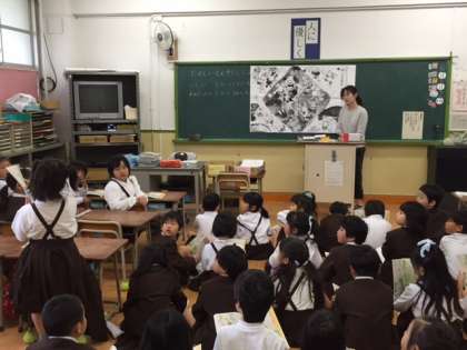 みんな、小学生になって初めての遠足なので、一生懸命お話を聞いていました。