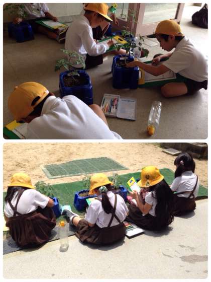 つぼみができていたり、花がさいていたりする苗もあったようで、子どもたちは実ができるのを楽しみにしています。