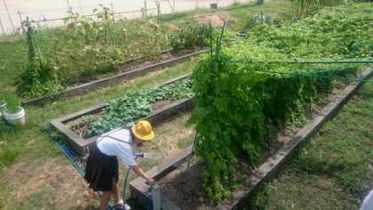 学校のある日だけでなく、学校が休みの日も、グリーンサポート隊の方たちが、学校のたくさんの植物の世話をしてくださっています。