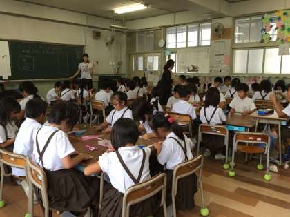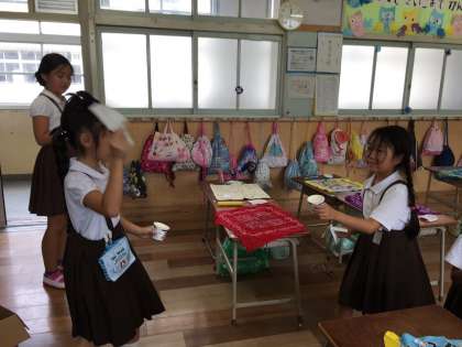 生活科の学習で、手作りおもちゃを作って遊びました。紙を切ったり折ったりして、ほうり投げるとくるくるまわる紙コプターを作りました。班ごとに教え合ったり、友だちと遊び方を工夫したりと、それぞれに協力しながら活動する様子がうかがえました。冬には、1年生を招待して、一緒におもちゃを作ったり、遊んだりする学習を予定しています。